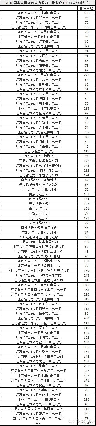 在已經結束的2018國網一批和二批次考試,各省電力公司的校園錄用招聘數據是怎樣的呢?精心查詢了數據以后,為參加2019批次的小伙伴們大揭秘,今天給大家帶來的是江蘇電網2018第一批次數據: