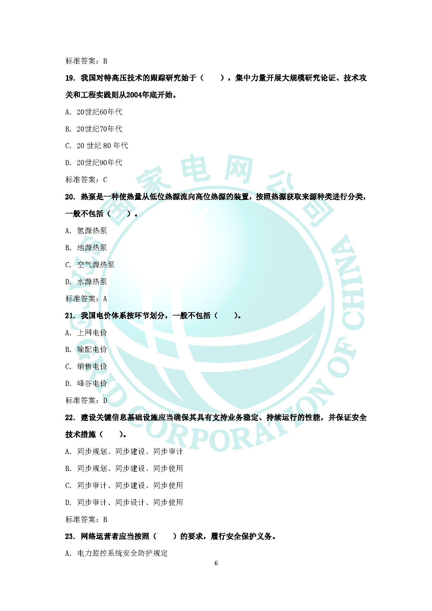 2019國家電網企業文化電力與能源戰略題庫(二)