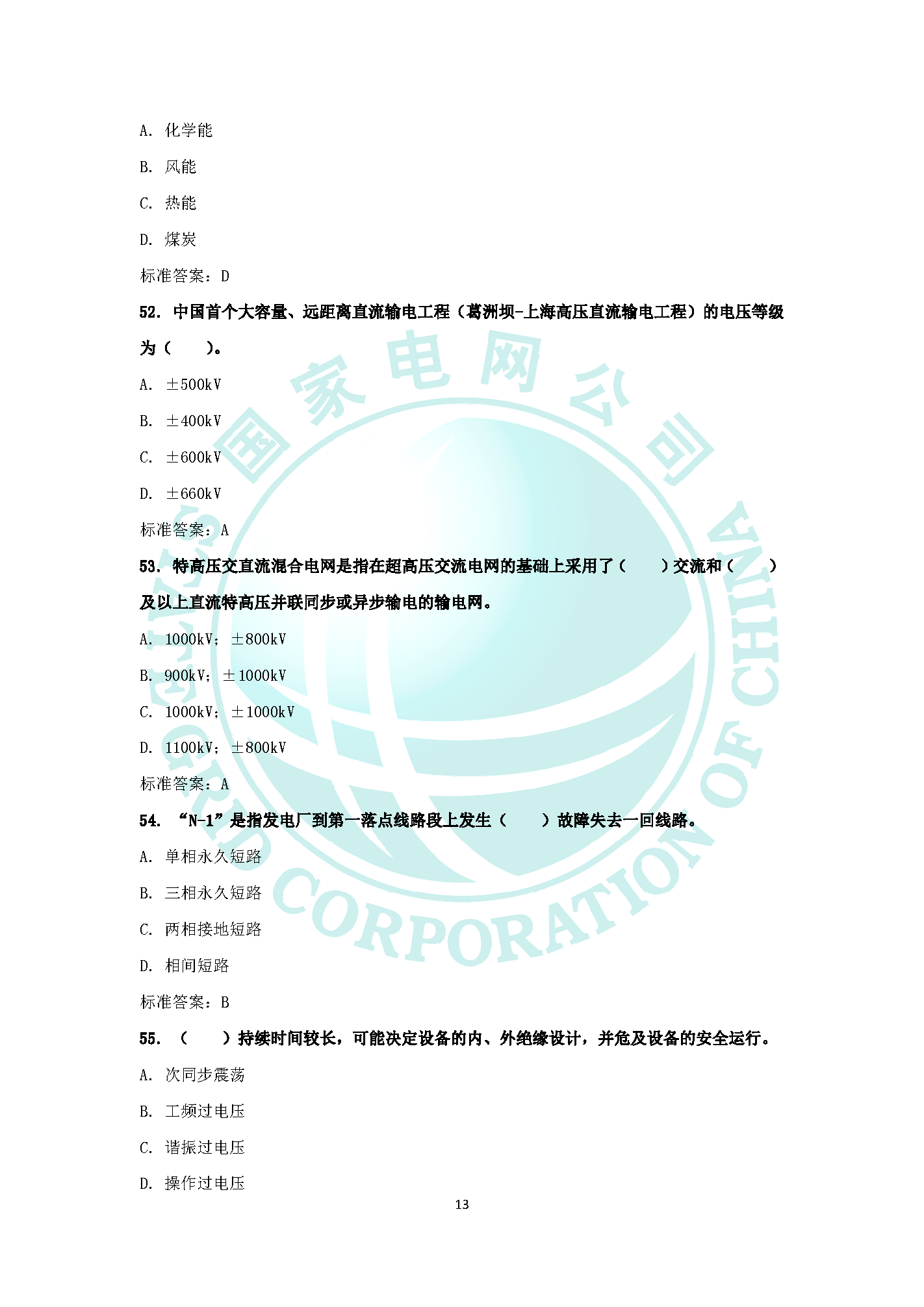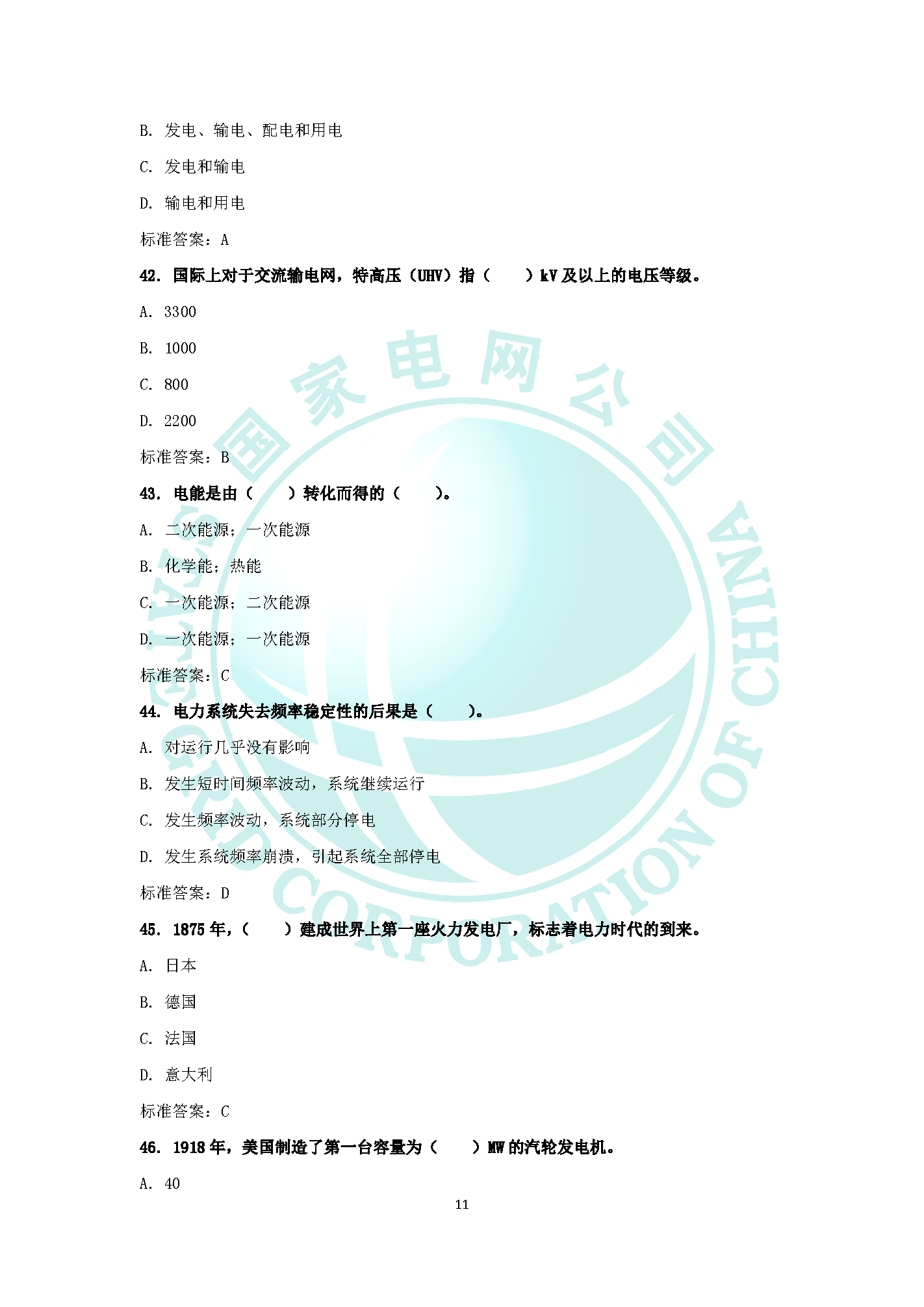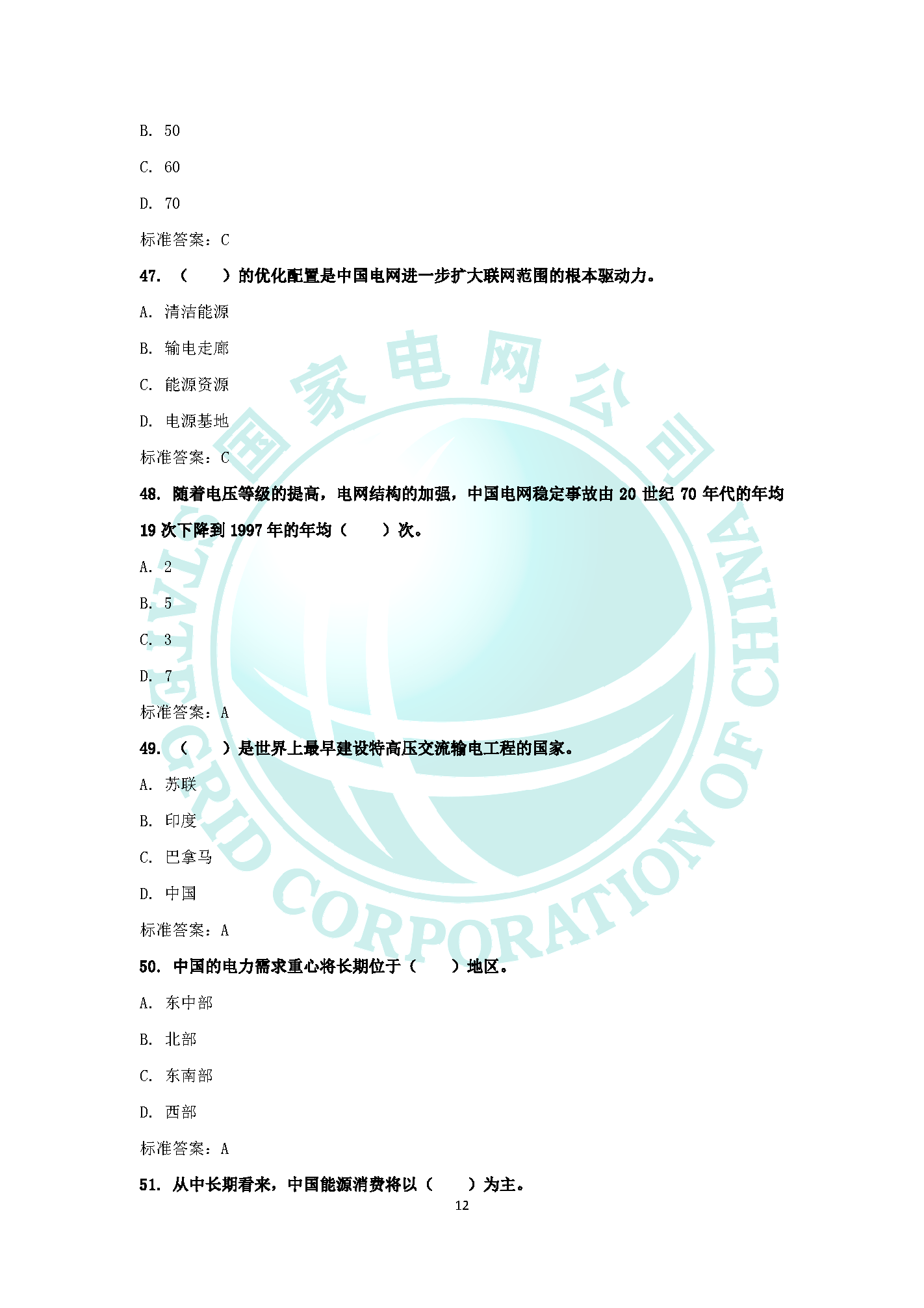 2019國家電網企業文化電力與能源戰略題庫(三)