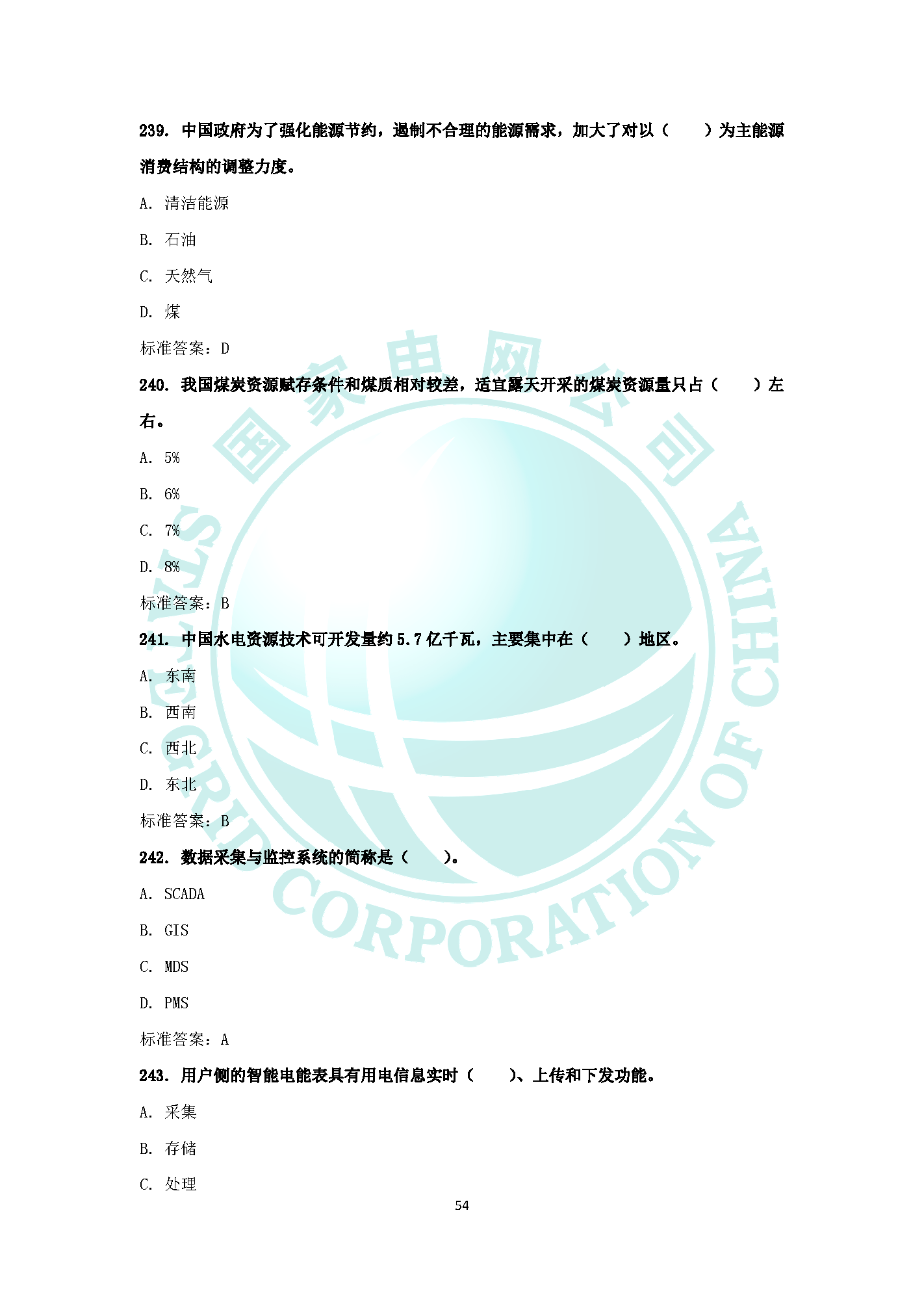 2019國家電網企業文化電力與能源戰略題庫(十一)