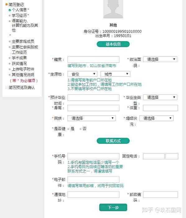 1、簡歷一旦確認,無法修改!無法修改!無法修改!家庭地址、電話,看清楚了!體重給出的單位是KG,看清楚了!是否最高學歷,看清楚了!各種證書編號,看清楚了!
