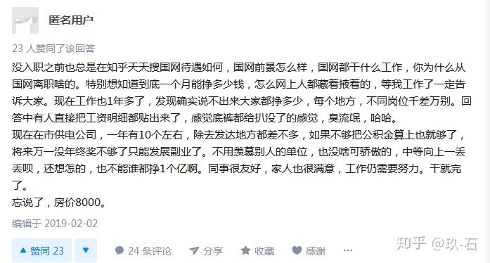 和大家一樣我們剛畢業那會也很關心待遇,薪資這個問題,但是這個問題太籠統了,就簡單的說全國很多的市縣,而且各省的經濟發展也不一樣,全省有自己下發的省公司電改和薪酬文件,比如華東江浙滬皖才下發的文件,碩士入職實習5000,本科4000,專科3000,這是全省統籌你在市局還是縣局都一樣(實際拿到手可能還會比這個數要低一點),至于其他的績效、崗級、職稱、能級、編制轉正期、專責、是否執行自負盈虧、縣區效益、三產和領導抽水問題,電網世界五百強他們的薪酬體系遠比我們想象的要復雜。比如有的同學會問我具體多少,那我說文件上有數字,進去見習期在省公司或市公司培訓還沒分到下面班組定崗的時候都是一樣的(也有一部分崗位班組不要求培訓直接上崗的),但是全國是不是執行統一文件,還是各省單獨執行就看各省情況了。