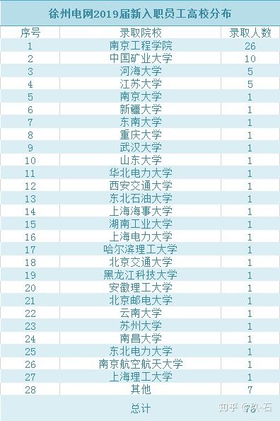 1、下面我們具體看一下徐州電網今年招聘錄取的新人都來自哪些高校吧。