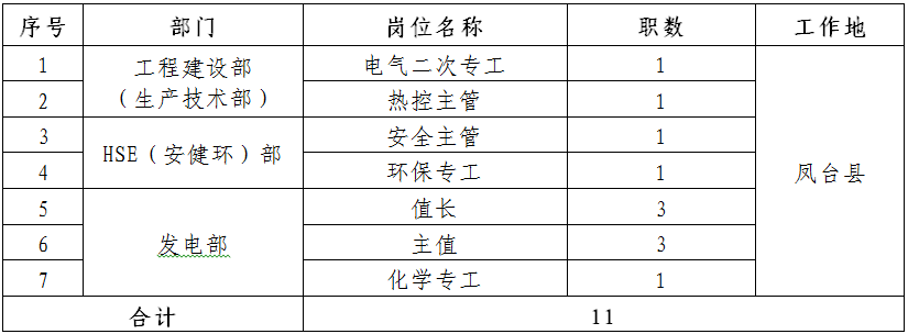 根據工作需要,面向集團公司系統內公開招聘所屬仁懷環保、純陽山風電、鳳臺生物質三家單位工作人員。現將有關事項公告如下: