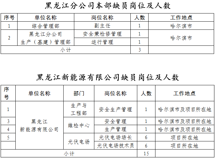 (四)黑龍江新能源有限公司缺員崗位工作內(nèi)容及任職要求
