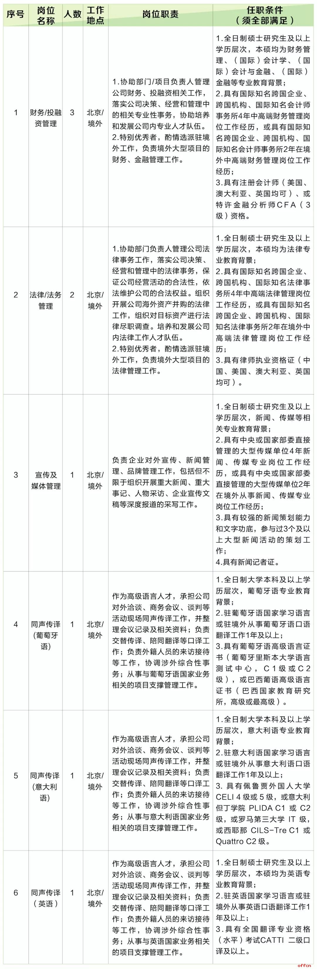 2. 應(yīng)聘人員須能夠接受駐國(guó)(境)外長(zhǎng)期工作;