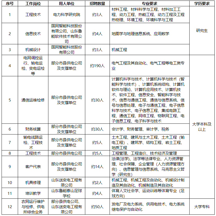 3.筆試、面試的時間地點,詳見國家電網有限公司人力資源招聘平臺國網山東省電力公司有關公告通知。