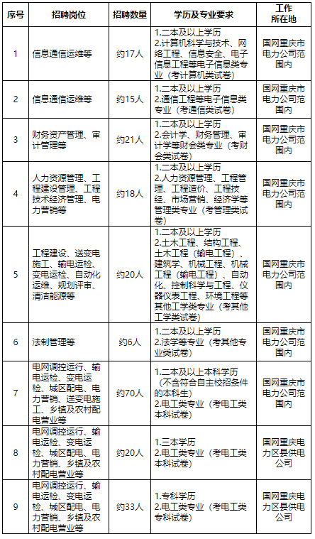 所有應聘國網重慶電力的畢業生: