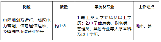 招聘單位包括國(guó)網(wǎng)呼倫貝爾供電公司、國(guó)網(wǎng)興安供電公司、國(guó)網(wǎng)通遼供電公司、國(guó)網(wǎng)赤峰供電公司四家市供電公司及所轄縣級(jí)供電公司;國(guó)網(wǎng)蒙東檢修公司、國(guó)網(wǎng)蒙東供電服務(wù)監(jiān)管中心。擬招聘崗位信息見(jiàn)下表:
