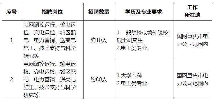 所有應聘國網重慶電力的畢業生: