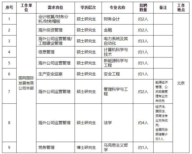 1.國(guó)際公司參加國(guó)家電網(wǎng)有限公司統(tǒng)一組織的招聘活動(dòng)。2020年招聘高校畢業(yè)生第一批統(tǒng)一考試時(shí)間擬定為2019年12月1日,國(guó)際公司如有后續(xù)批次招聘計(jì)劃,將在招聘平臺(tái)予以通知。