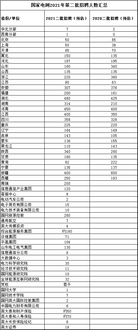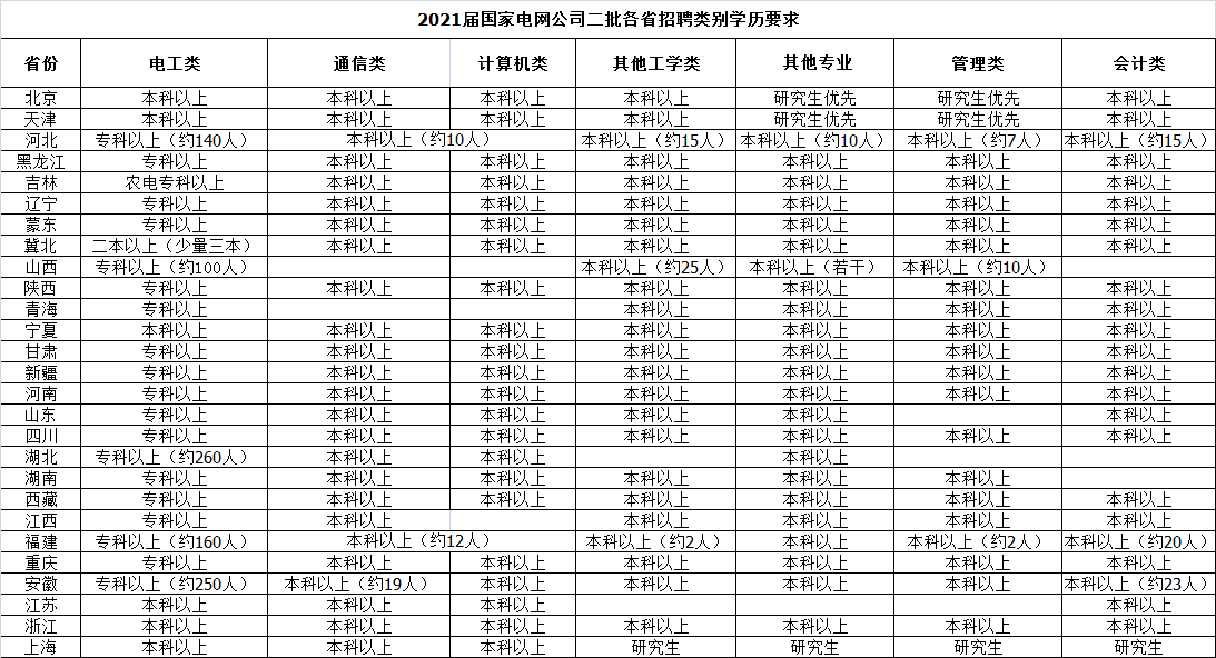 國家電網2021年第二批招聘人數及崗位要求匯總