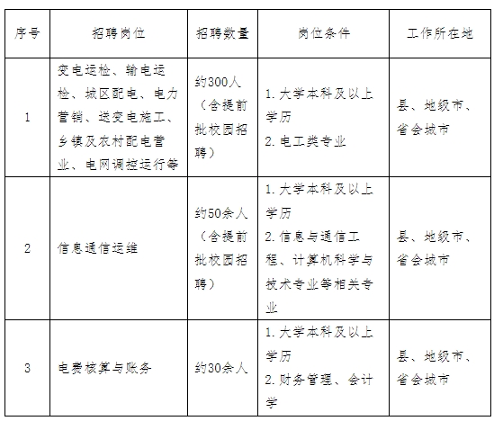 根據國家電網公司統一安排,國網山西省電力公司2024年高校畢業生招聘第一批考試,主要面向電工類、電子信息類、財務會計類專業畢業生。