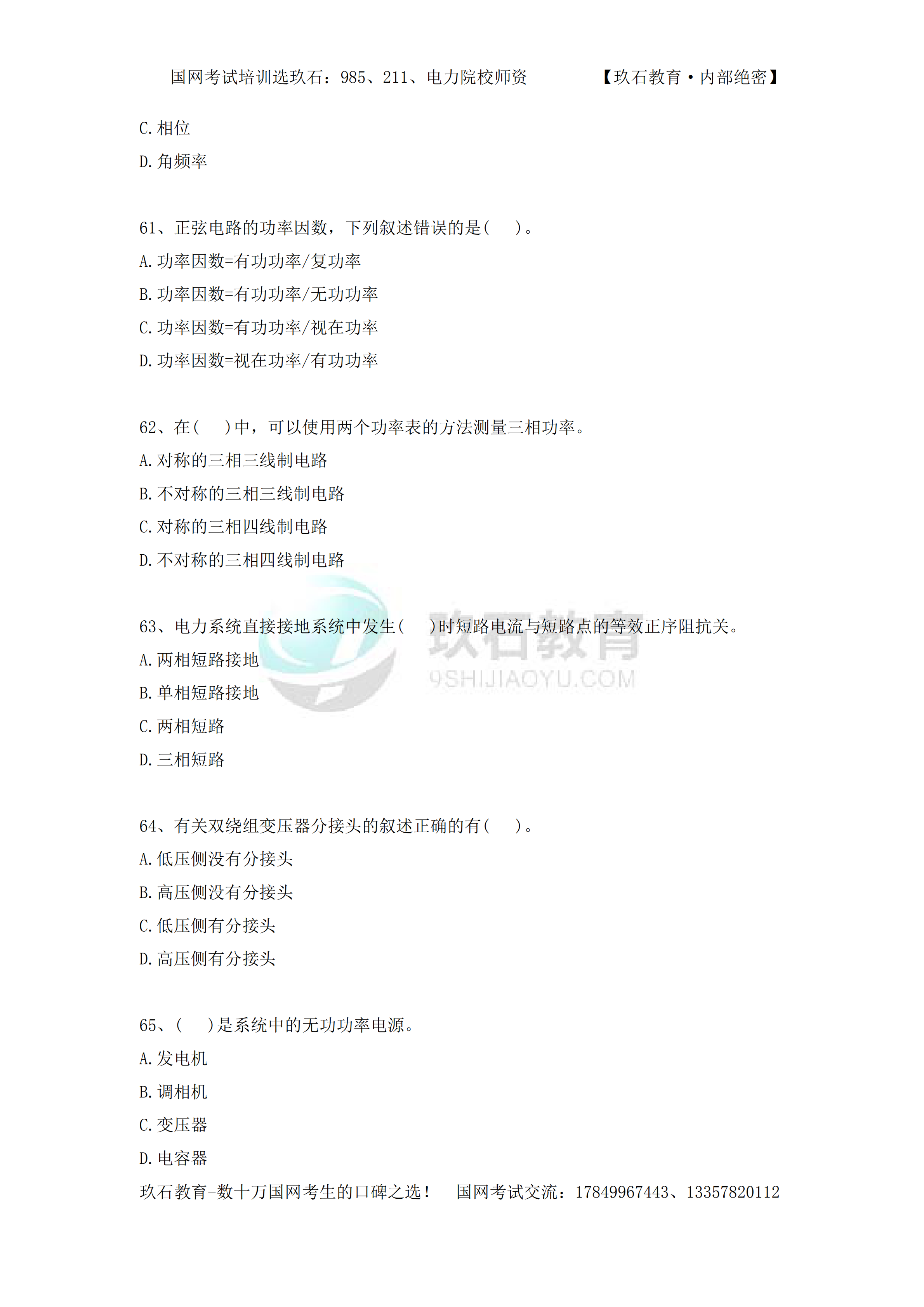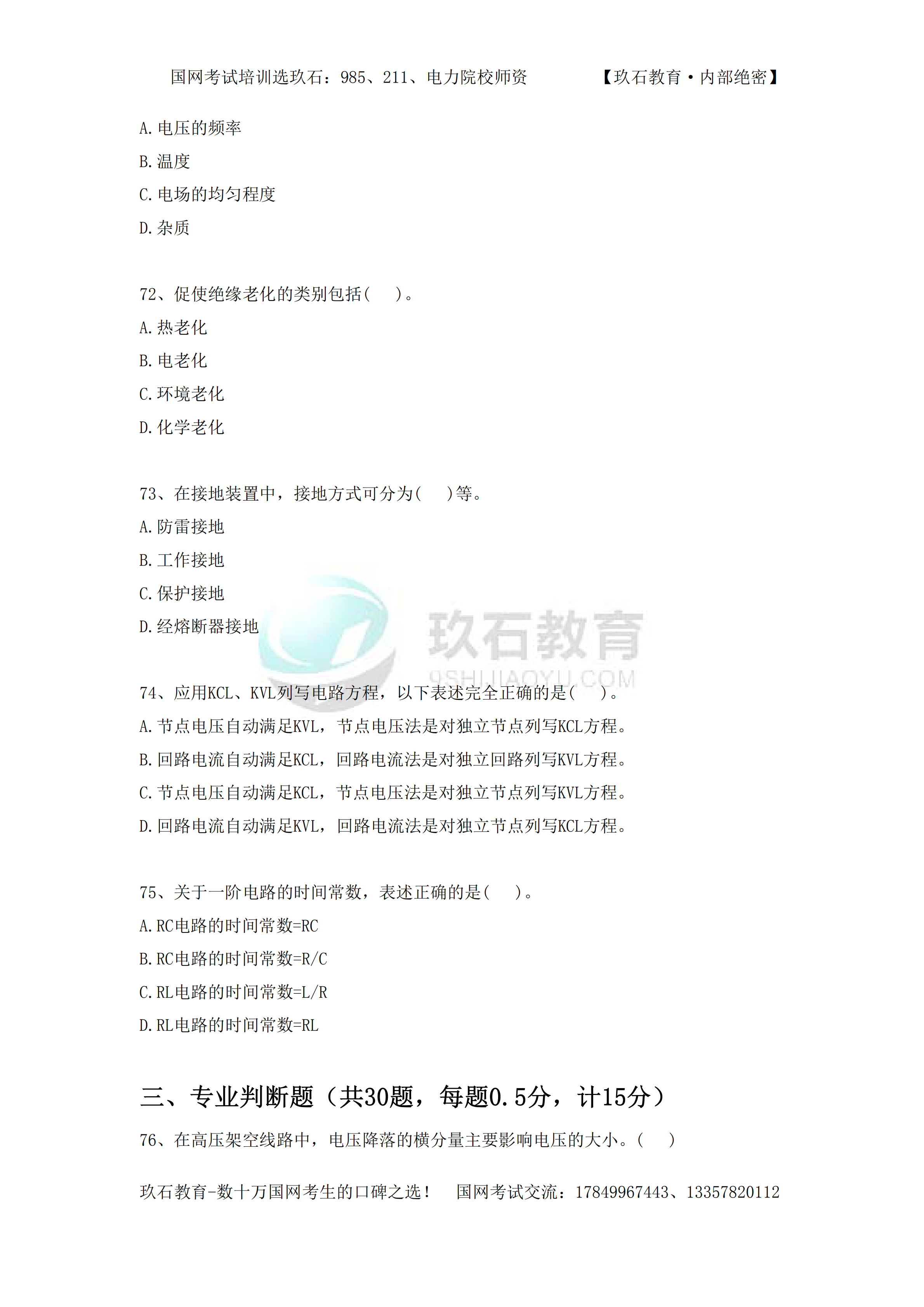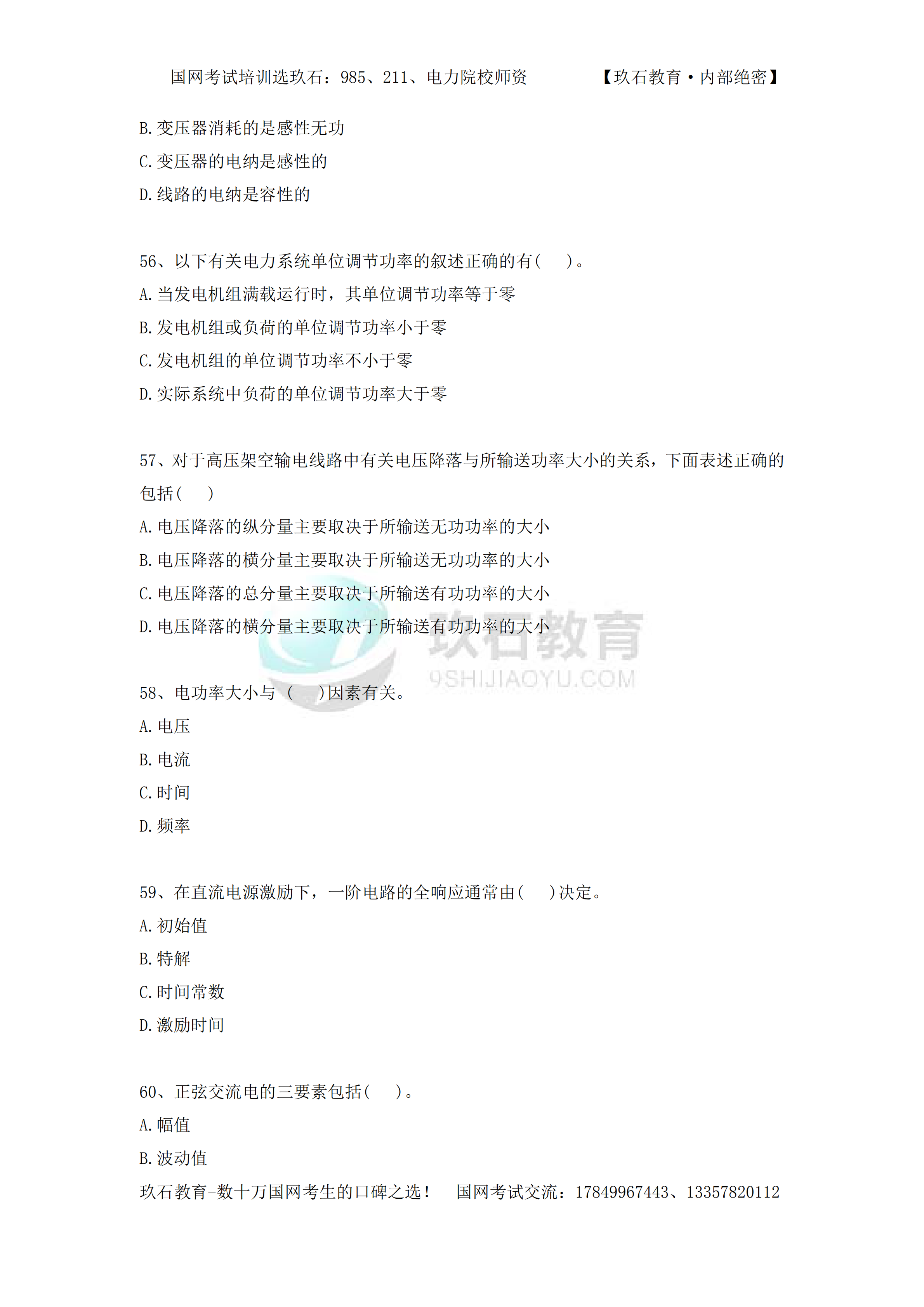 2014年國家電網(wǎng)招聘真題電工類本科(三)——(56-83)