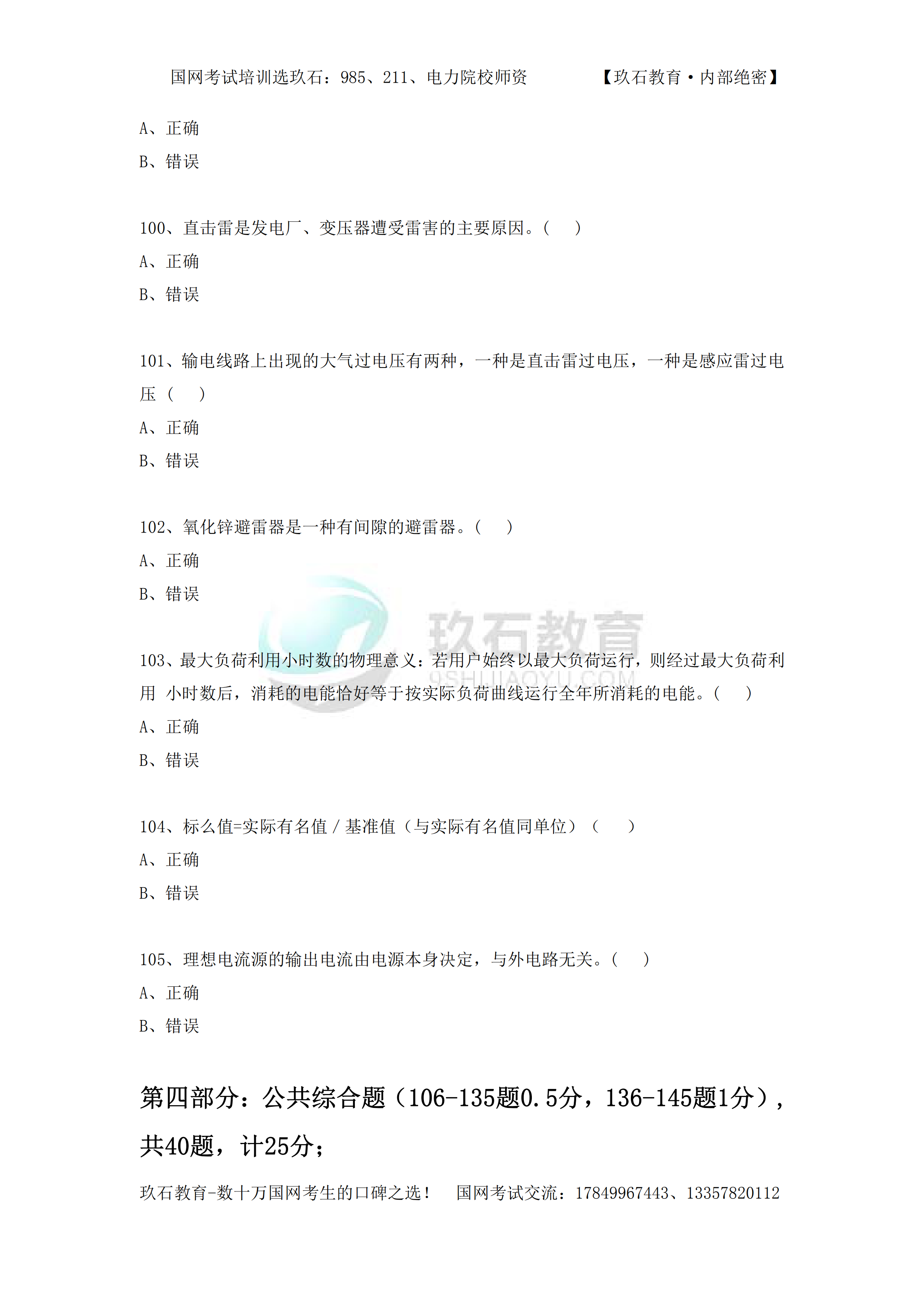 2014年國家電網招聘真題電工類本科(四)——(84-116)