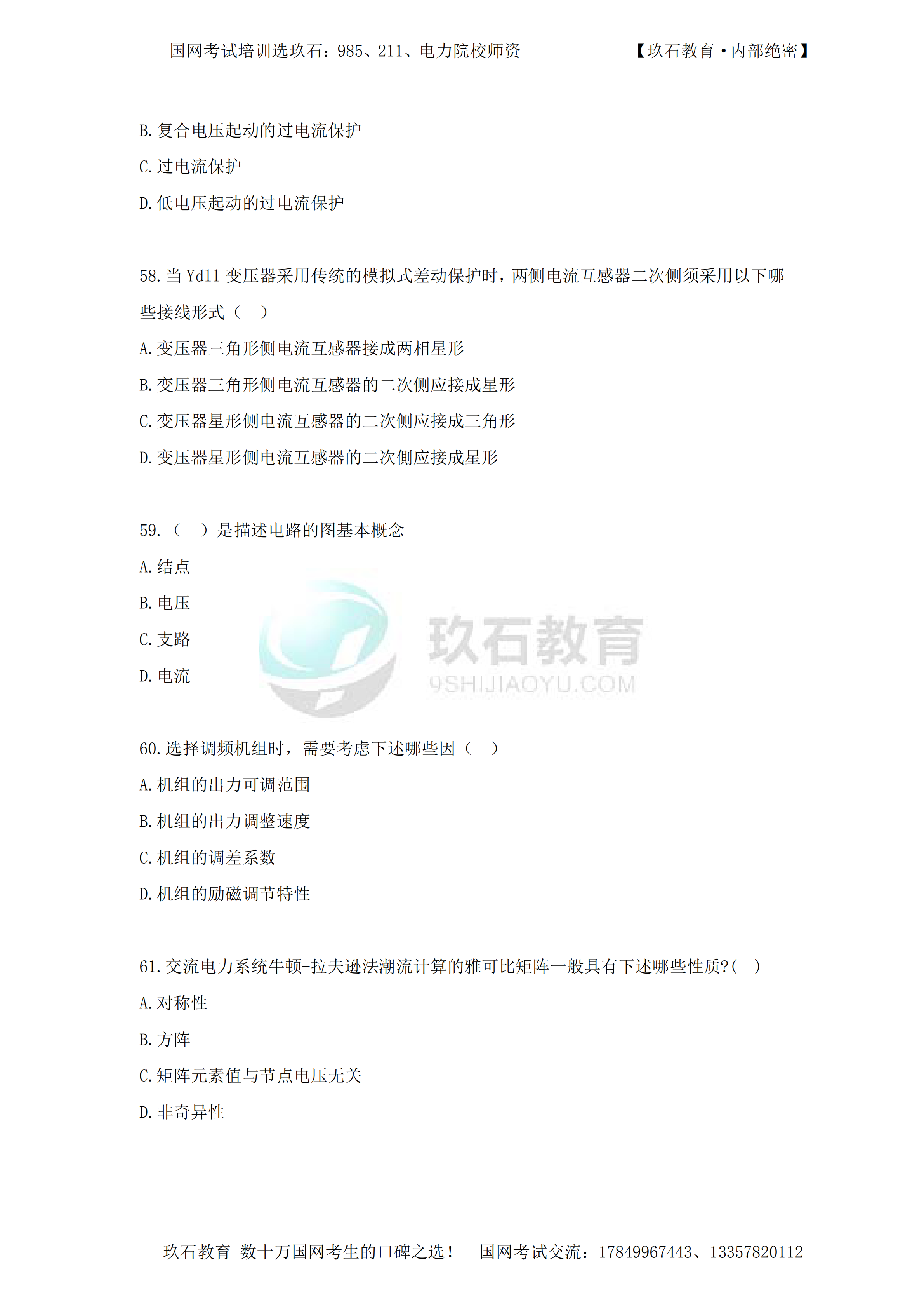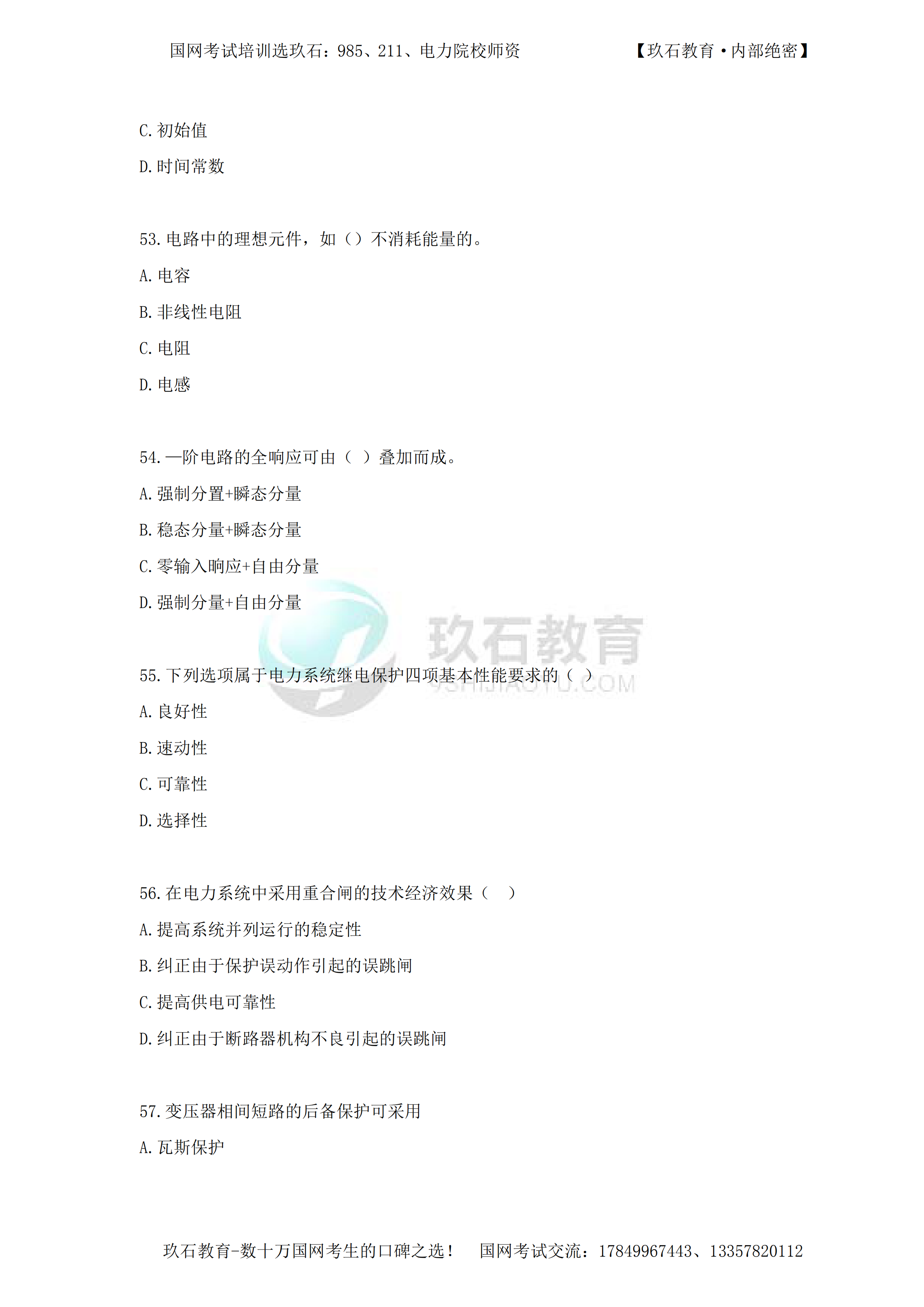 2015年國家電網招聘真題電工類本科(三)——(49-71)