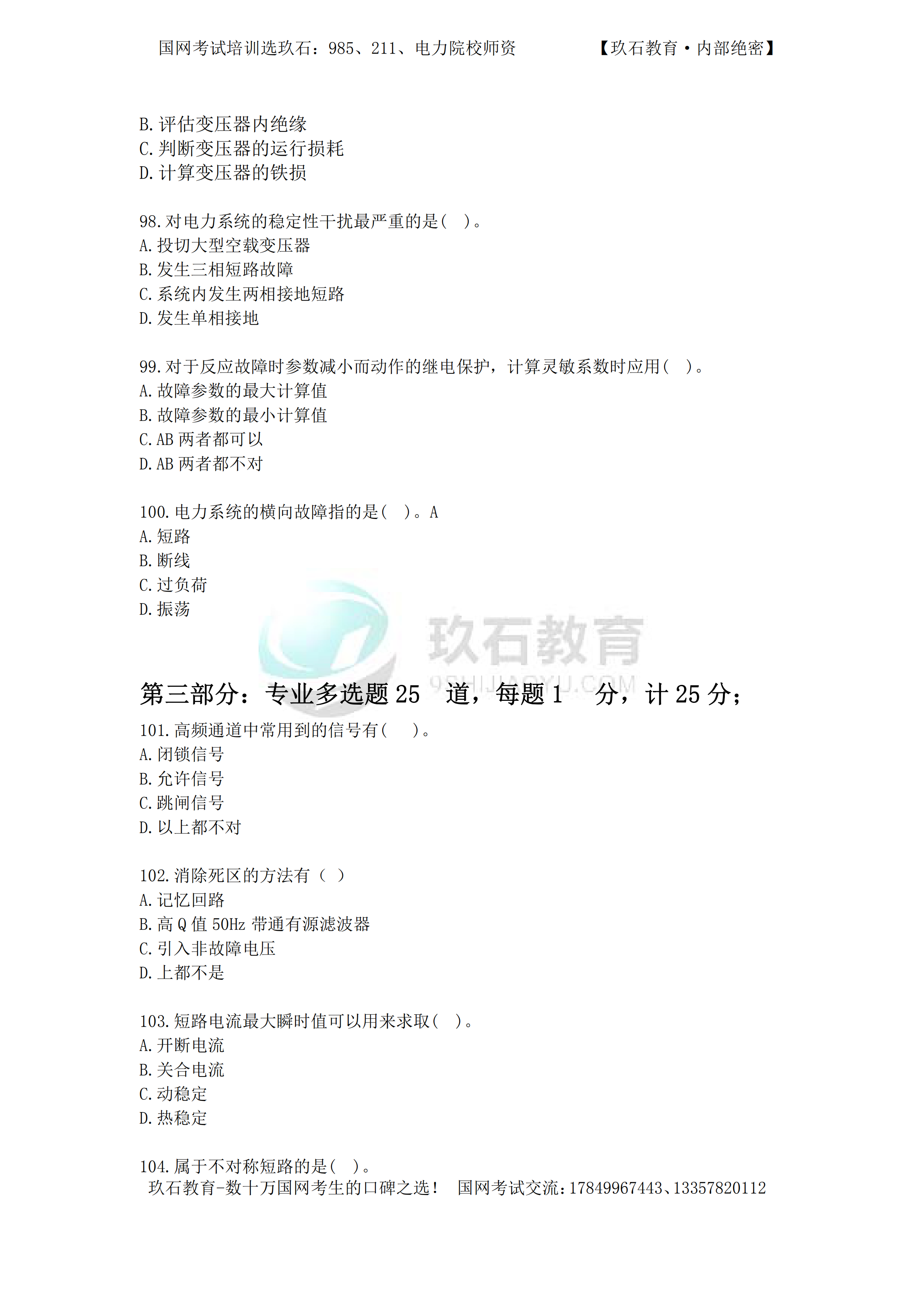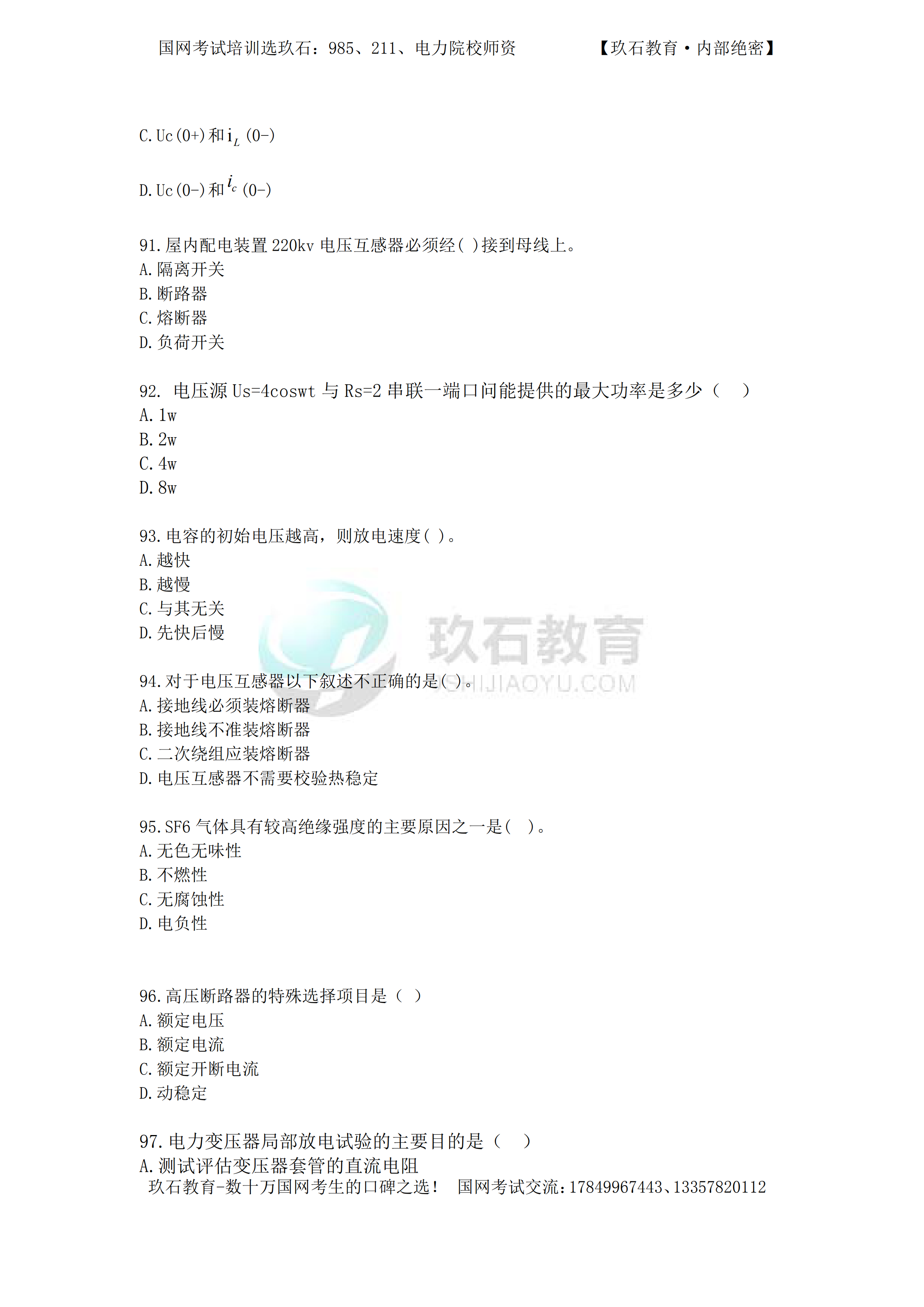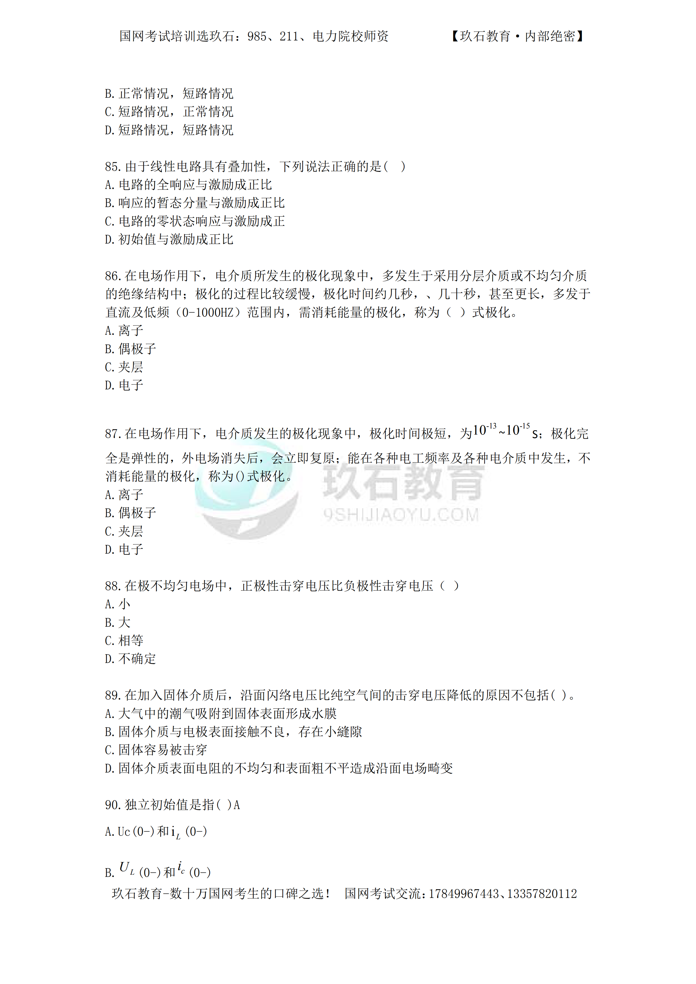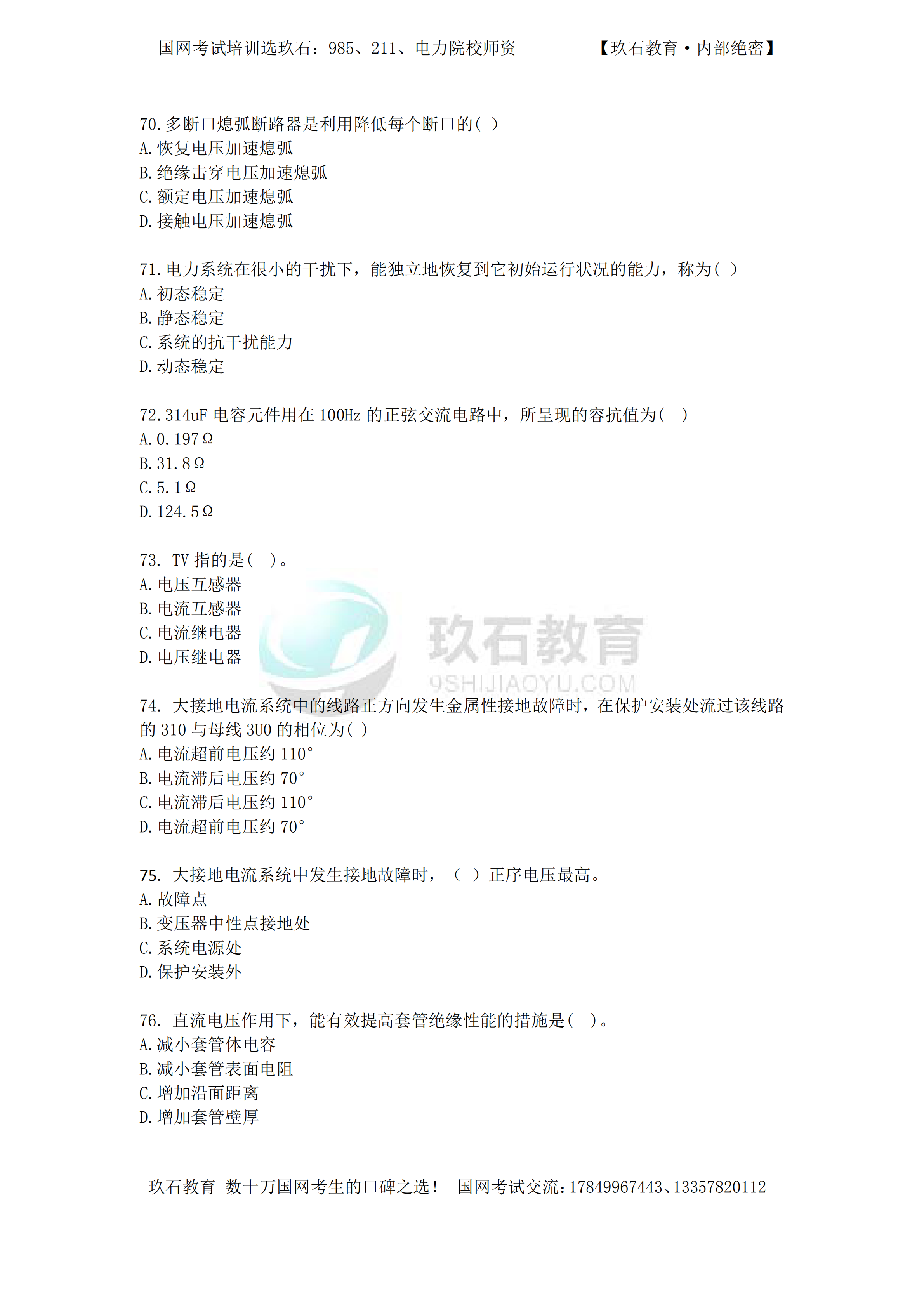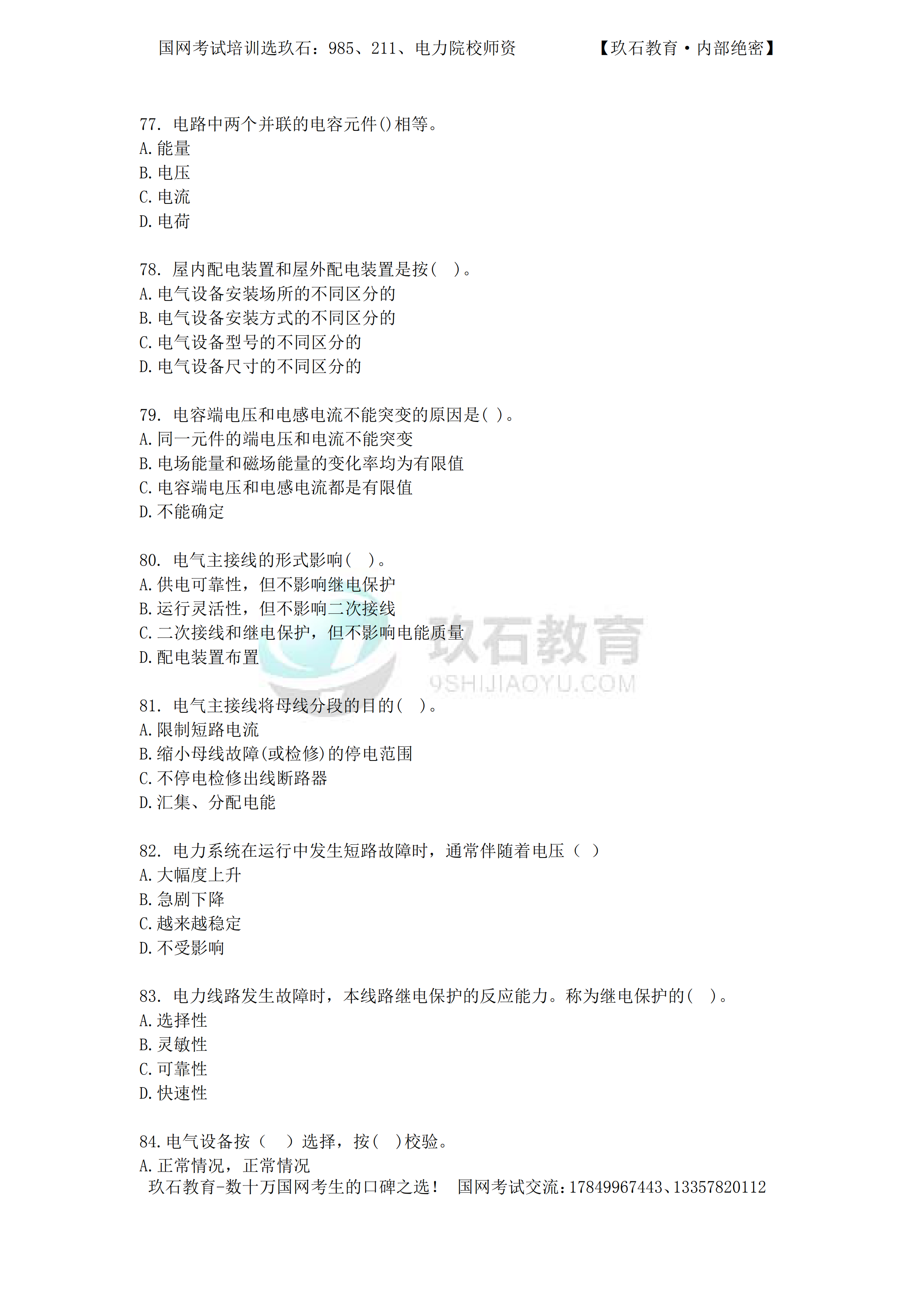 2016年國家電網招聘真題電工類本科(三)——(70-104)