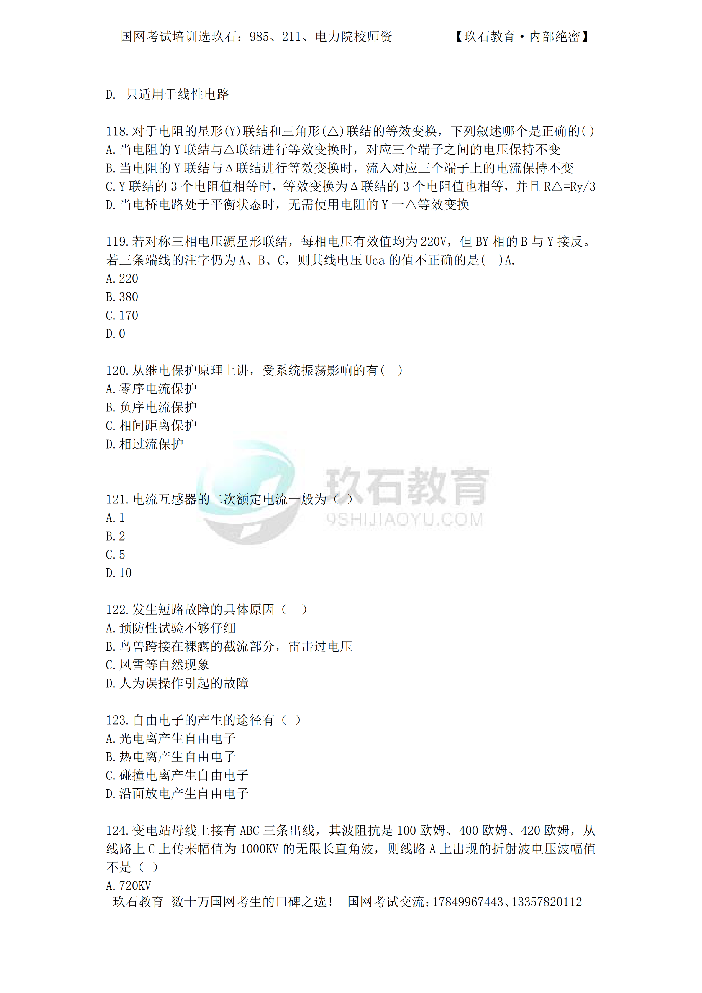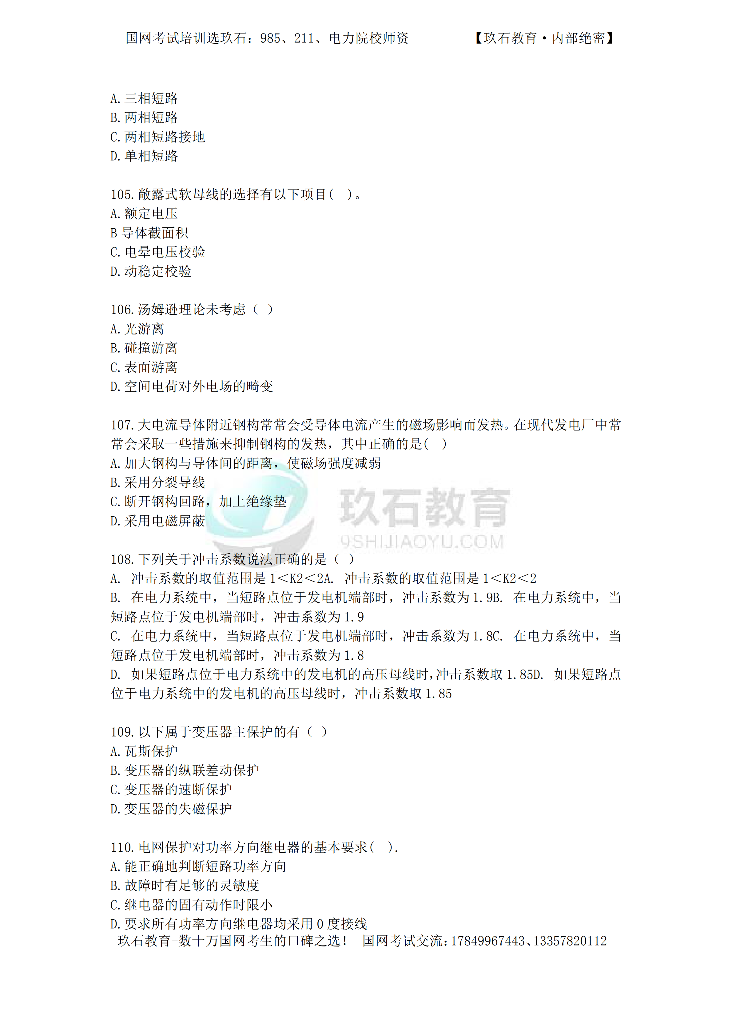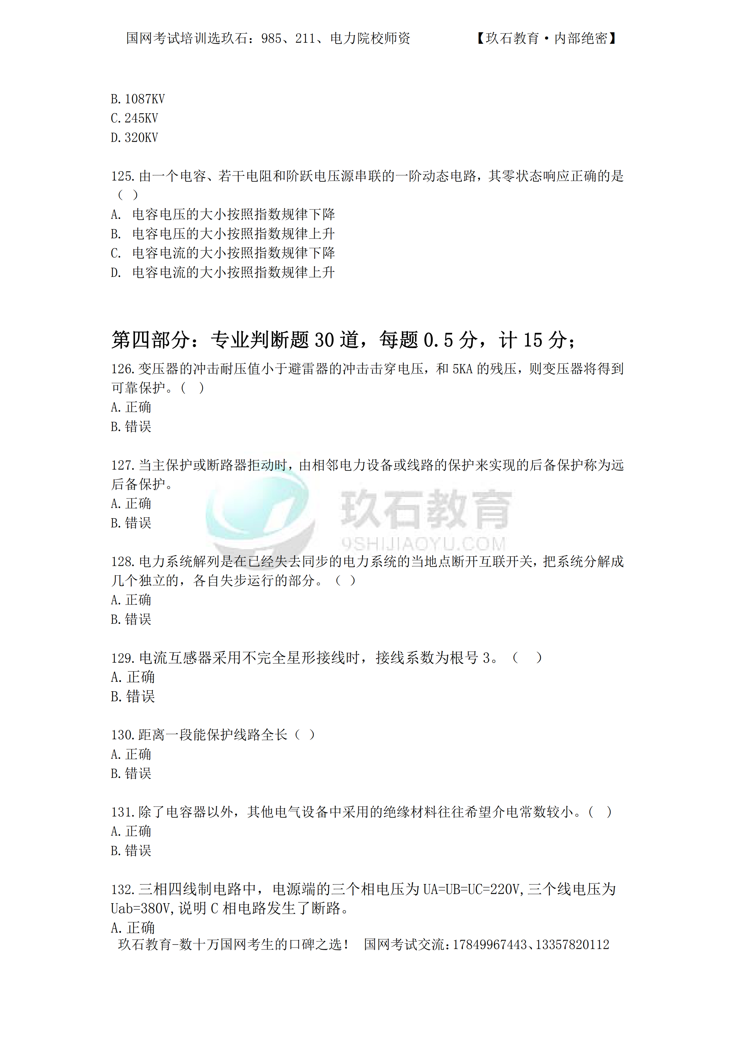 2016年國家電網招聘真題電工類本科(四)——(105-142)