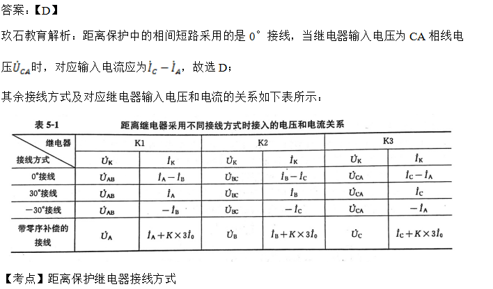 2.距離保護的CA相阻抗繼電器采用0°接線,其輸入電壓為CA相線電壓UCA,則其輸入電流應為(    )。
