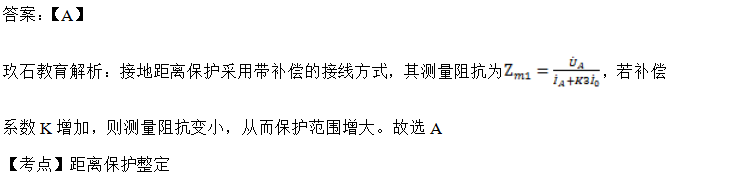 3.某110k線路的接地距離保護的,零序補償系數由0.667被誤整為2,將使保護范圍( )。