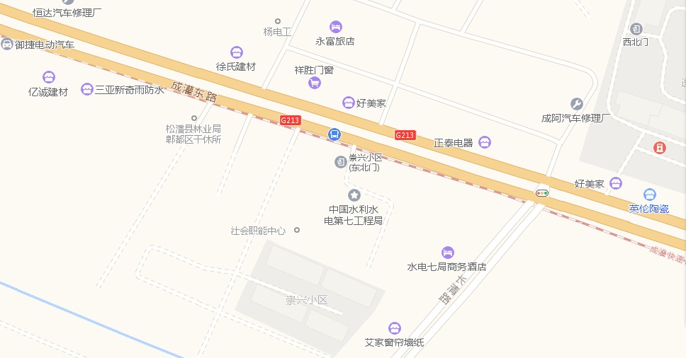 成都東客站乘坐地鐵2號線(犀浦方向)到犀浦站B出口,再轉乘720路或P40公交,到成灌路長清路口站。發車時間:06:10-22:30。