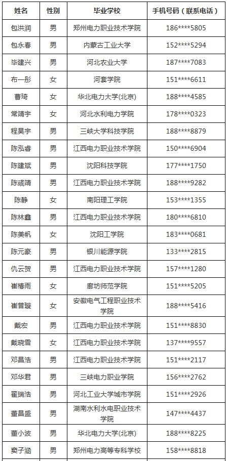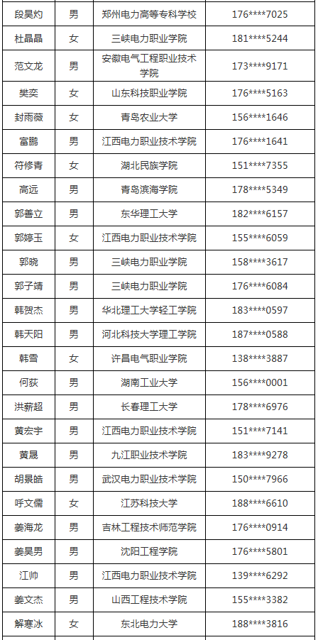 注:手機號碼(聯系電話)是應聘人在國家電網公司人力資源招聘平臺中登記的聯系電話。