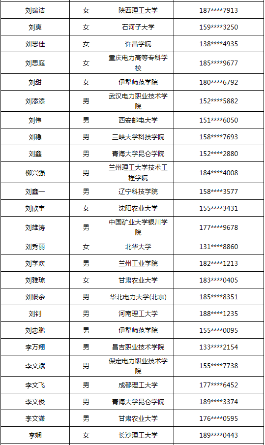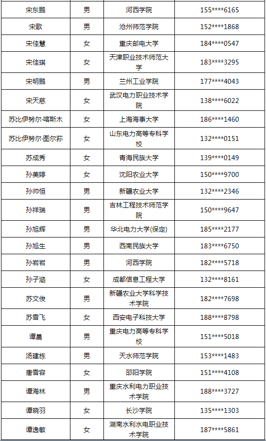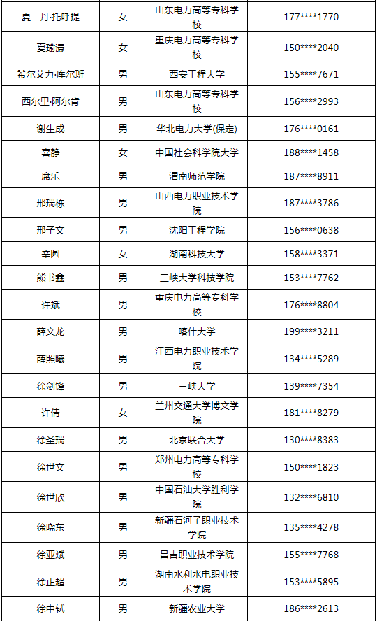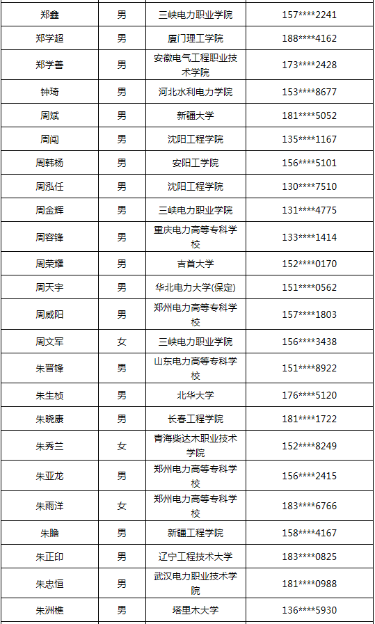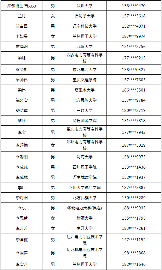 注:手機號碼(聯系電話)是應聘人在國家電網公司人力資源招聘平臺中登記的聯系電話。