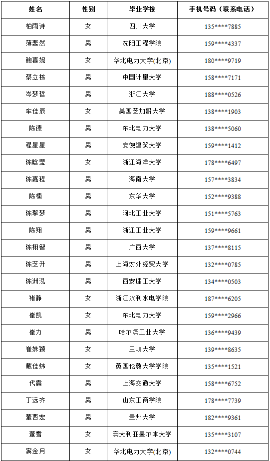 注:手機號碼(聯系電話)是應聘人在國家電網公司人力資源招聘平臺中登記的聯系電話。