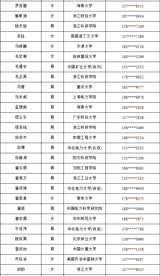 2019年國網浙江省電力有限公司第2批高校畢業生錄用人員公示