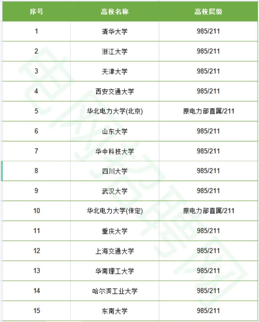 所以在高校層次方面,980人中,來自985高校的人共340人,占比達(dá)35%,原電力部直屬及211高校548人,占比高達(dá)56%,境外院校占比1%,雙非院校占比僅為8%。