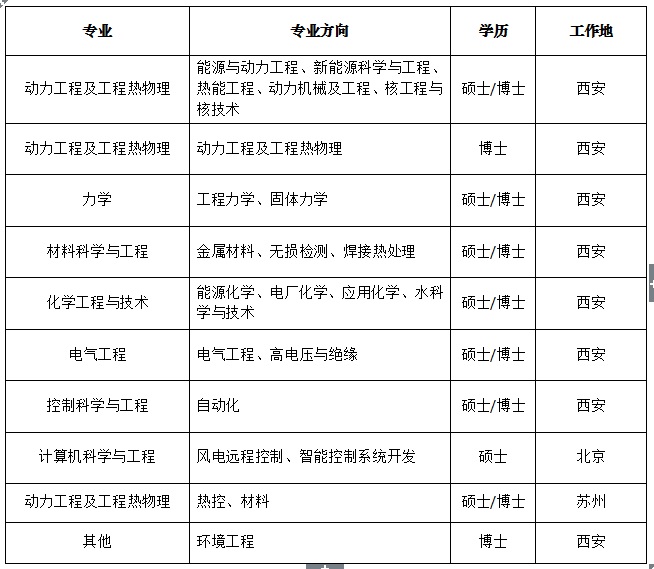 (部分專業可能有調整,具體以西安熱工院在線簡歷投遞系統為準!)