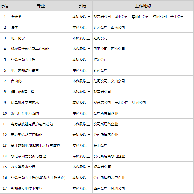 現根據公司發展的需要,公司面向全國各院校招聘2019年大學專科及以上畢業生,安排到公司所屬企業工作。歡迎熱愛電力事業的優秀學子加盟,共同發展。