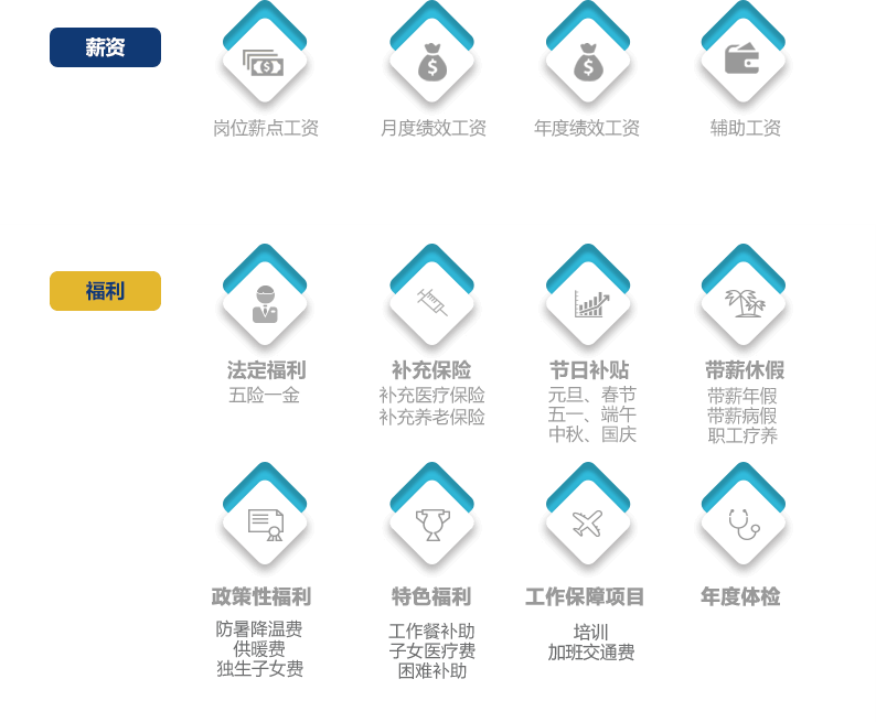 公司提供五險(xiǎn)一金外,還為員工繳納補(bǔ)充醫(yī)療保險(xiǎn)和補(bǔ)充養(yǎng)老保險(xiǎn)(企業(yè)年金);五險(xiǎn)一金即養(yǎng)老保險(xiǎn)、醫(yī)療保險(xiǎn)、失業(yè)保險(xiǎn)、工傷保險(xiǎn)、生育保險(xiǎn)及住房公積金;員工享有節(jié)日補(bǔ)貼、工作餐補(bǔ)貼、通訊補(bǔ)貼、住房補(bǔ)貼等福利;每年組織免費(fèi)體檢,還享有帶薪年假、帶薪病假、職工療養(yǎng)等福利。