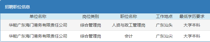 2019年華能集團廣東海門港務有限責任公司校園招聘啟事
