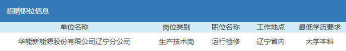 2019年華能新能源股份有限公司遼寧分公司校園招聘啟事