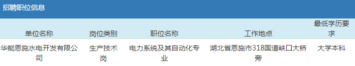 2019年華能集團(tuán)恩施水電開(kāi)發(fā)有限公司應(yīng)屆高校畢業(yè)生招聘公告
