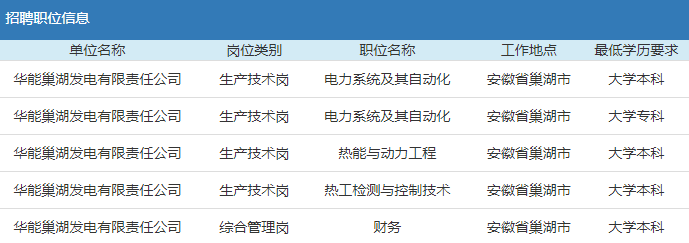 2019年華能集團巢湖發電有限責任公司校園招聘公告