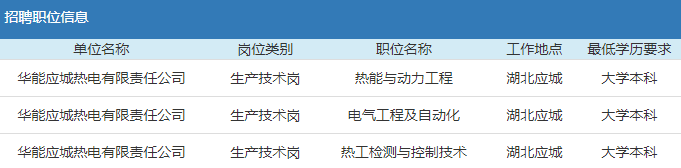2019年華能集團應城熱電有限責任公司高校應屆畢業生招聘公告