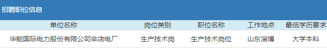 2019年華能集團辛店電廠應屆高校畢業生招聘公告